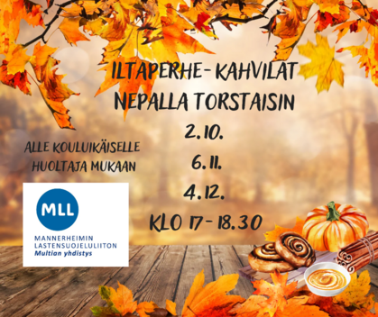 Perhekahvilassa tutustut uusiin ihmisiin ja voit jakaa kokemuksia muiden vanhempien kanssa. Kohtaamispaikkana toimii Multian nuorisotila Nepa (Keskustie 33) ja kesäaikaan useimmiten leikkikenttä.